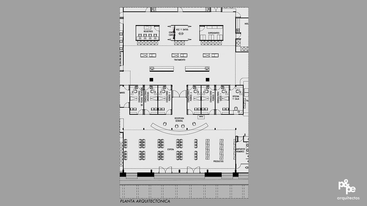 En respuesta a la necesidad de contar con un Hospital para la atención a al público de la carrera de veterinaria de la Universidad de Valle de México campus Coyoacán. Se generó una propuesta a partir de un edificio existente que rompe con los paradigmas de la clásica clínica veterinaria en donde el diseño de mobiliario y decoración sumado al manejo del color blanco en la mayoría de las áreas interiores con detalles en colores vanguardistas complementa un diseño atractivo para los usuarios.