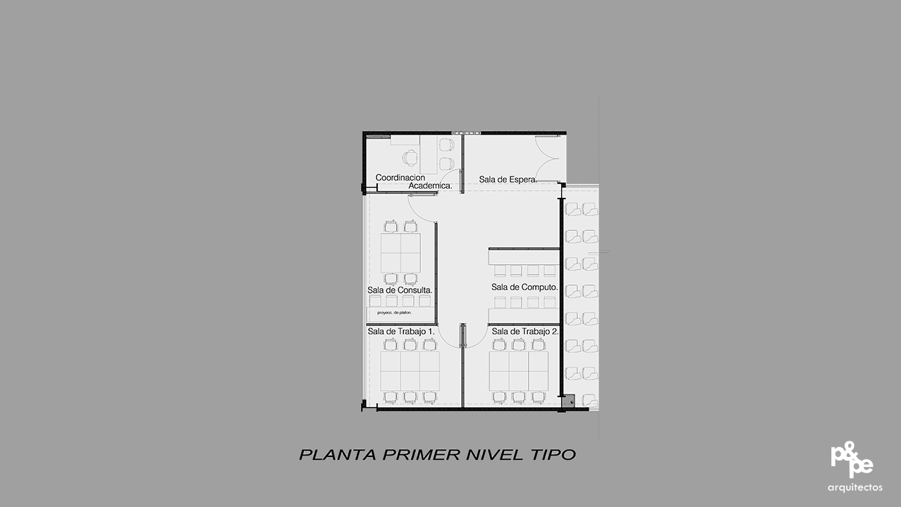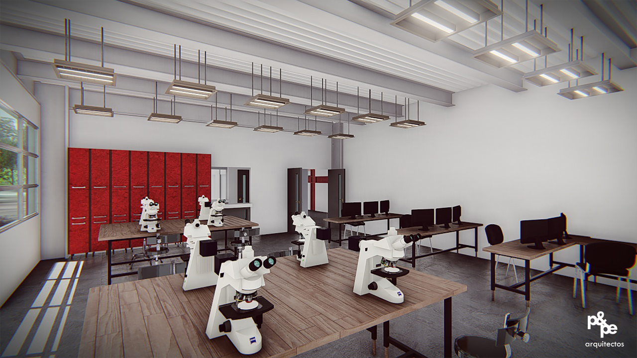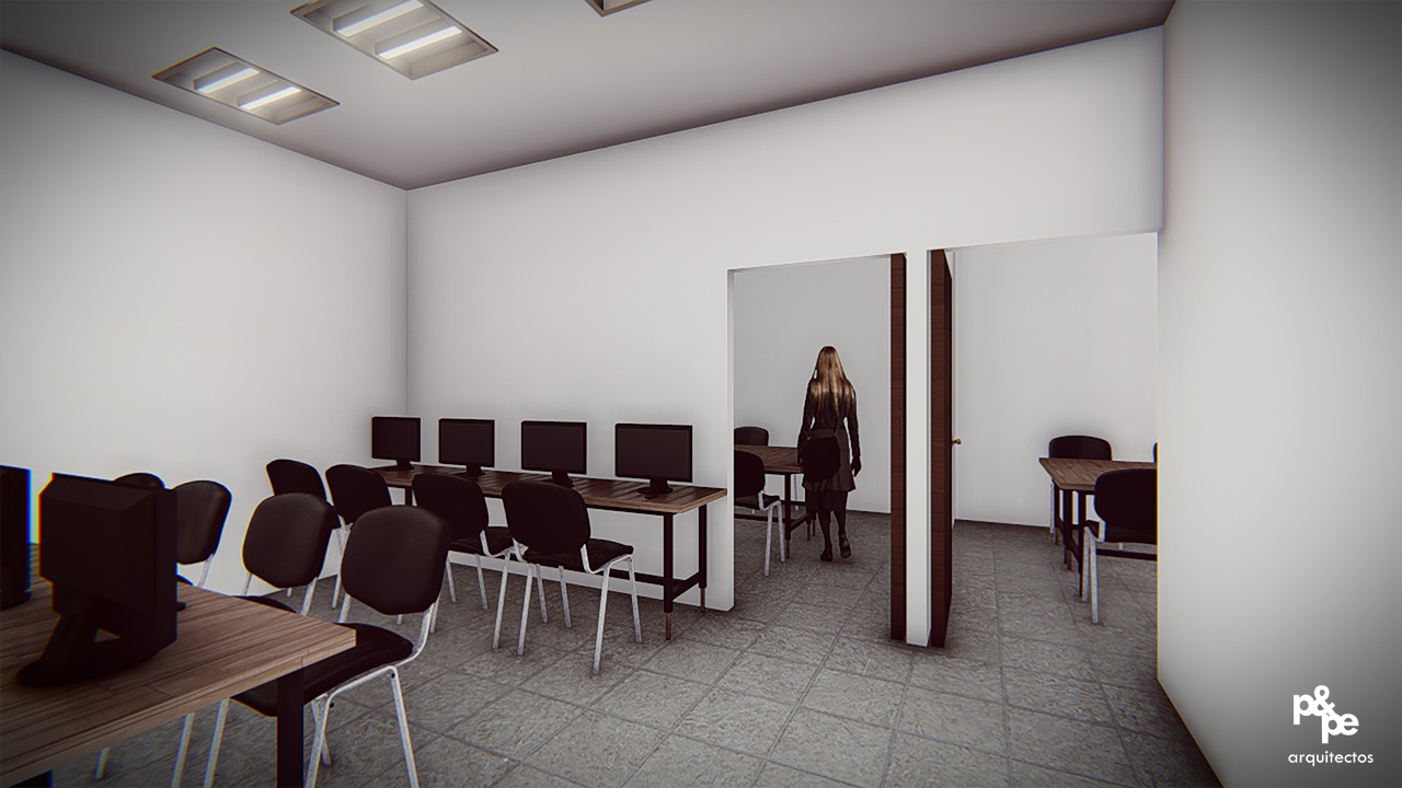 La necesidad de contar con un espacio dedicado específicamente al estudio de TSU Petróleos, se desarrolló un proyecto en dos niveles adecuándose a la propuesta de un edifico existente y fusionándose de la mejor manera.